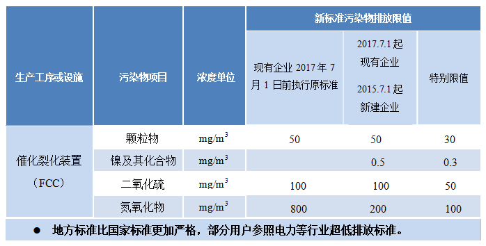 大幅收緊了催化裂化再生煙氣各污染物排放指標(biāo)。同時對余熱 鍋爐吹灰期間粉塵排放作出了要求。