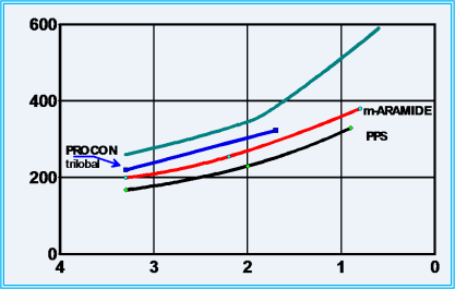 - 備注:PPS濾料抗氧化性能較差,要求氧含量<8%,在實際使用過程中,煙氣中氧含量每增加1%,要求使用溫度降低20℃。